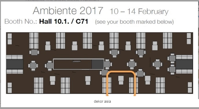 Upcoming Participant Ambiente Fair 10-14 Februari 2017Company : PT. DEKOR ASIA JAYAKARYA, Ambiente 2017 10 – 14 February, Booth No.: Hall 10.1. / C71
